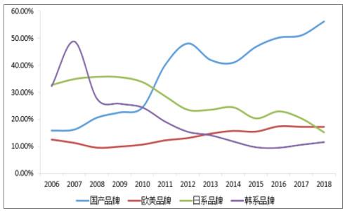 2006-2018年挖機行業(yè)國產(chǎn)品牌份額提升