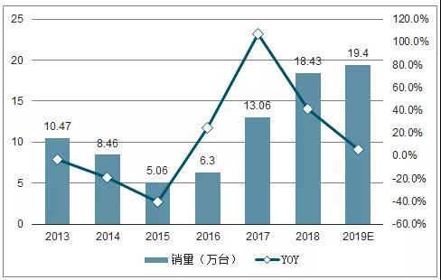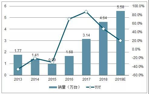 2013-2019年國內(nèi)挖機銷量及增速預(yù)測