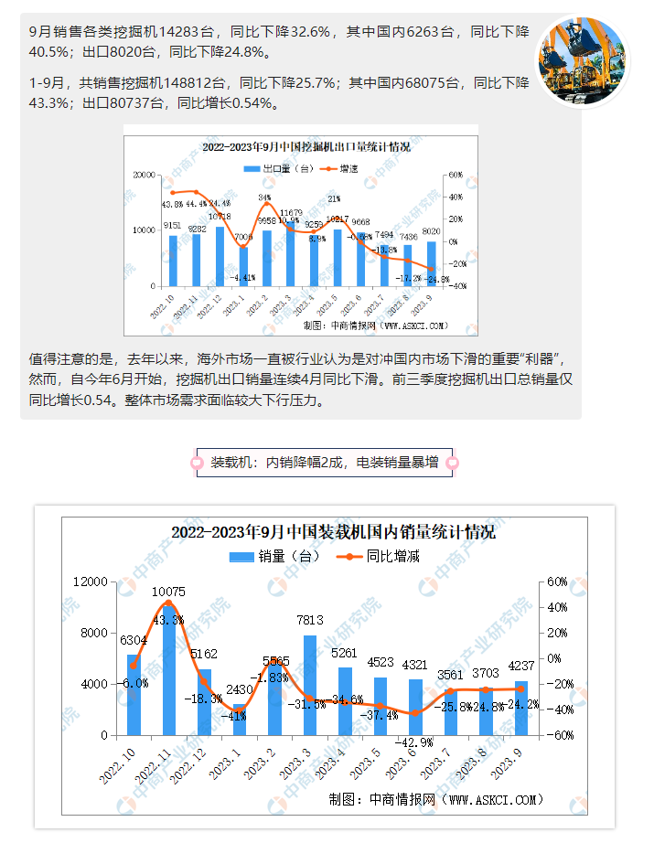 上一篇:2023年9月挖掘機國內(nèi)市場銷量6263臺,同比下降40.5%